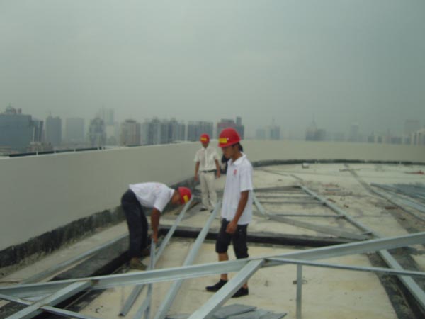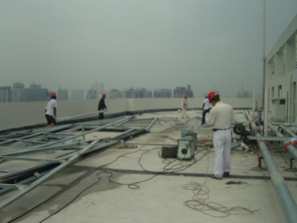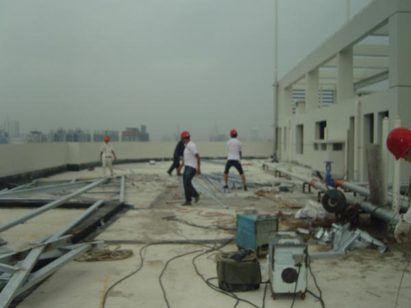 工程部的員工正忙于鋼架的搭建