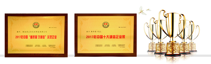 誠信,讓企業(yè)更受尊重,讓中國更受尊重。湖南省正陽光電科技有限公司及其董事長廖偉雄先生在推進(jìn)我國商業(yè)誠信和社會(huì)誠信建設(shè)中做出特殊貢獻(xiàn)和示范意義,經(jīng)有關(guān)部門推薦審核,湖南省正陽光電科技有限公司被評(píng)為“重質(zhì)量、守誠信”示范企業(yè),董事長廖偉雄榮獲“中國十大誠信企業(yè)家”稱號(hào)。